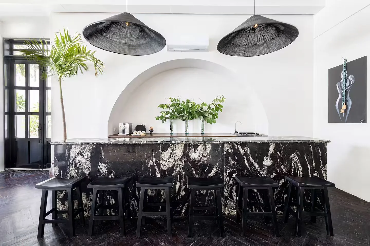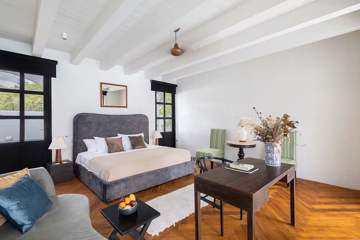 Every space at Rae’s has been thoughtfully designed. Light-filled interiors, warm wood details, velvet seating, and curated furnishings create an atmosphere that feels relaxed yet refined. From intimate corners to expansive communal areas, the villa invites connection without ever feeling crowded.